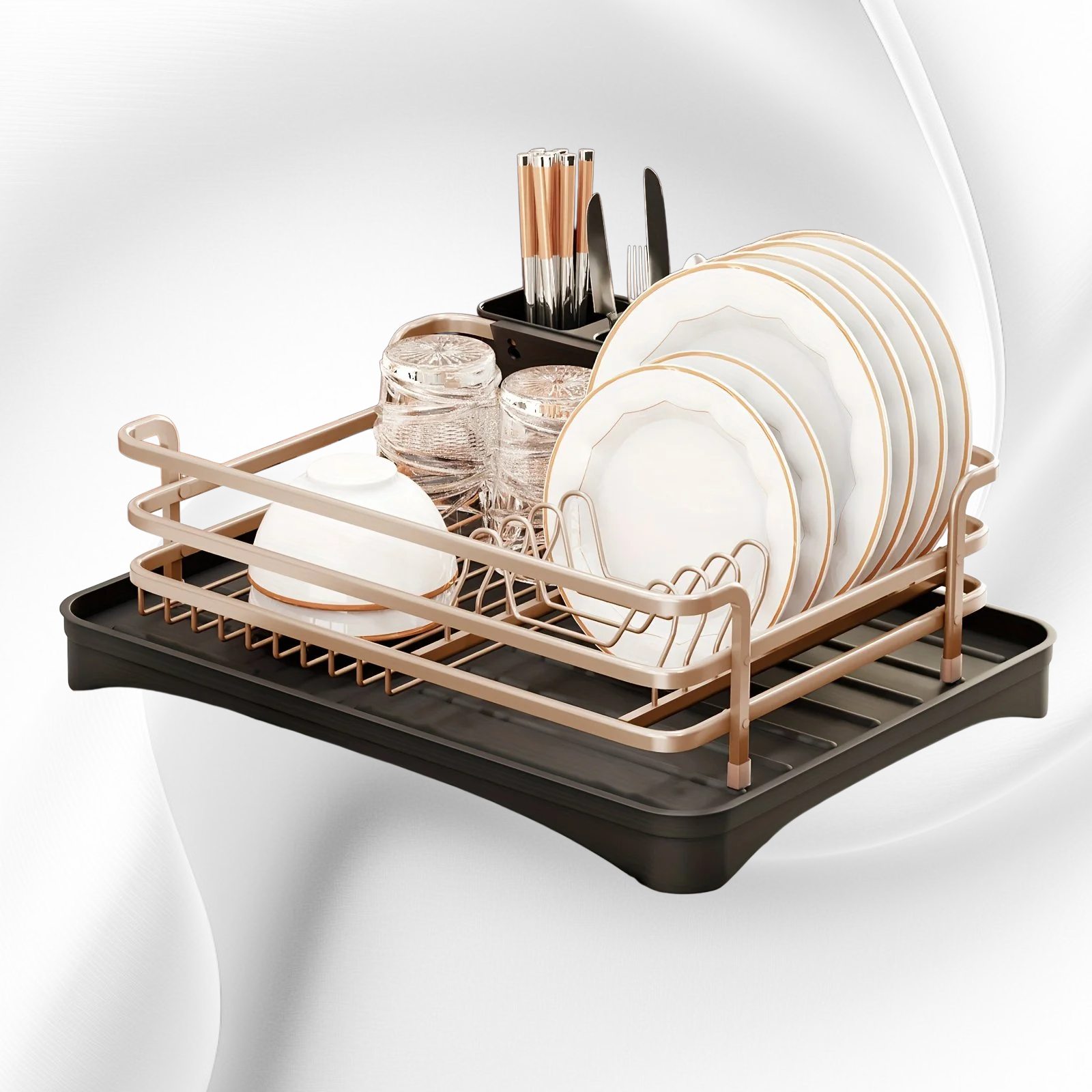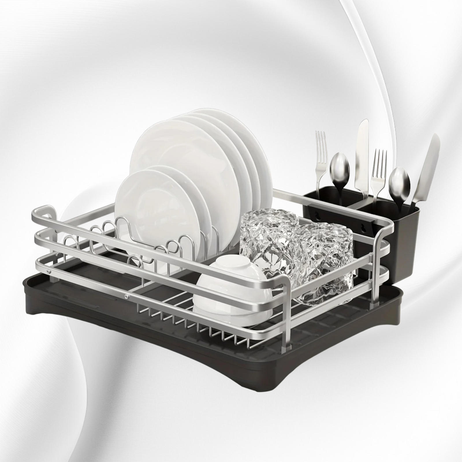 多機能アルミ合金食器乾燥ラック カトラリーホルダー付き|家庭用収納用品