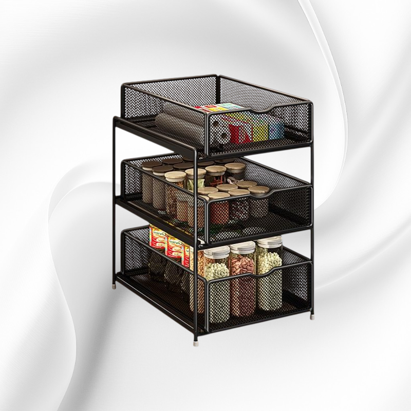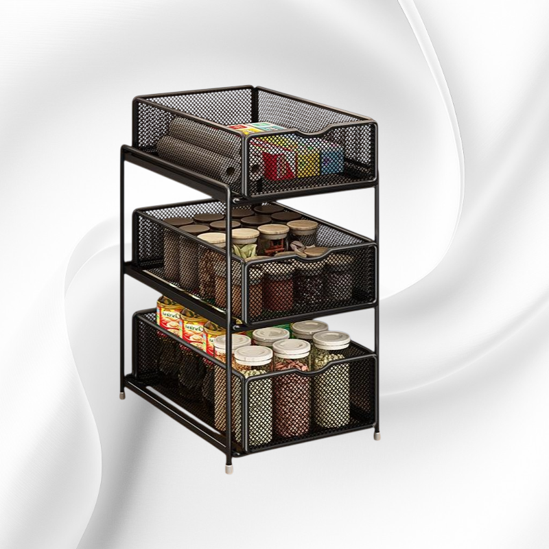 引き出し式多層ラックでシンク下のスペースを有効活用。調味料や調理器具の整理に便利。組み立て簡単、耐久性に優れたキッチン収納キャビネット。