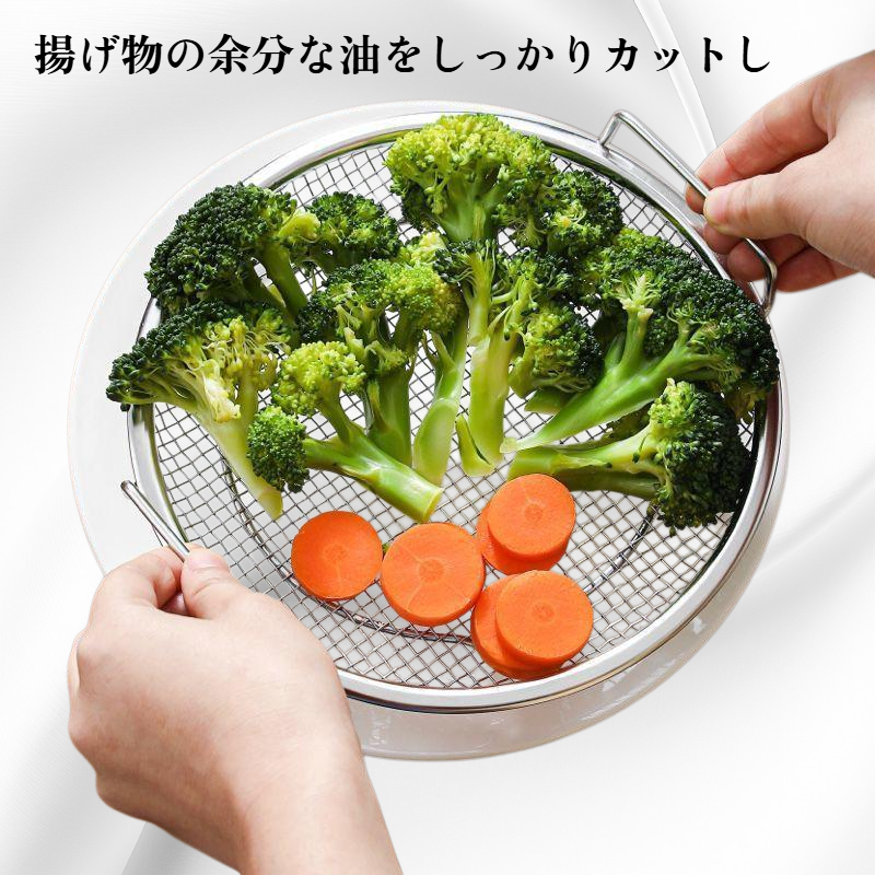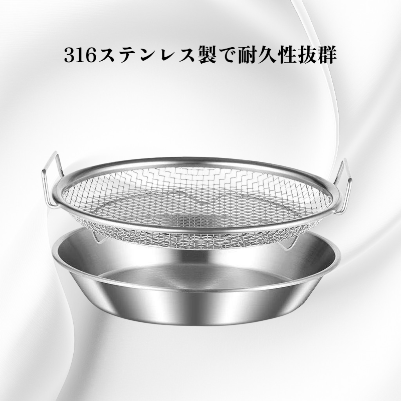316ステンレス製で耐久性抜群。揚げ物の油切りに最適なネットトレー。錆びにくくお手入れ簡単。キッチンの衛生管理に便利。